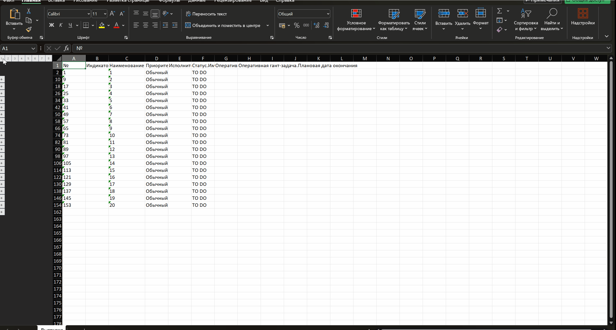 Улучшен механизм экспорта диаграммы Ганта в Excel. Теперь при формировании файла система автоматически группирует задачи по уровням иерархии, что делает структуру проекта более наглядной и удобной для последующей работы и анализа в табличном формате. Поддерживается группировка до 7 уровней вложенности в экспортируемом файле, что позволяет корректно выгружать даже сложные проектные структуры, сохраняя управляемость и читаемость данных для руководителей и проектных офисов.