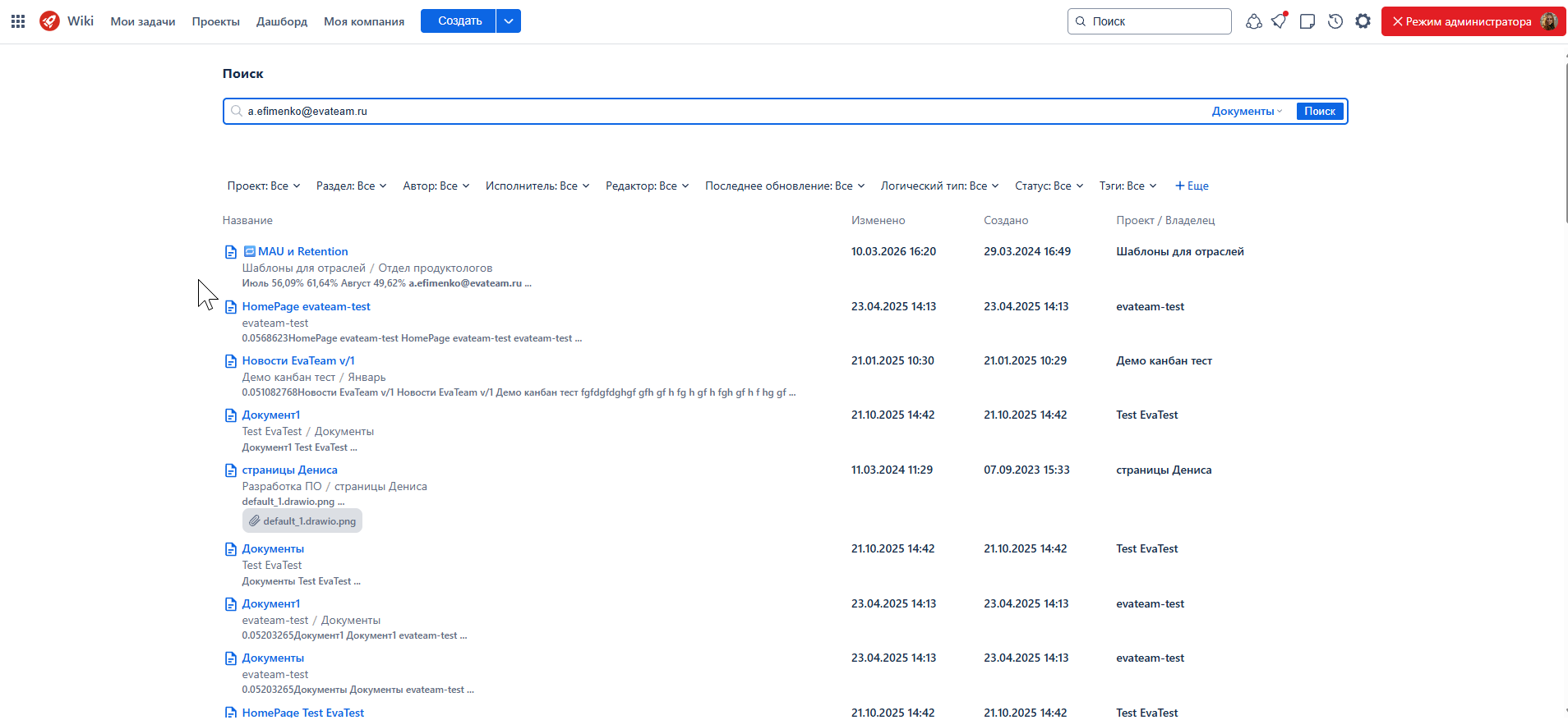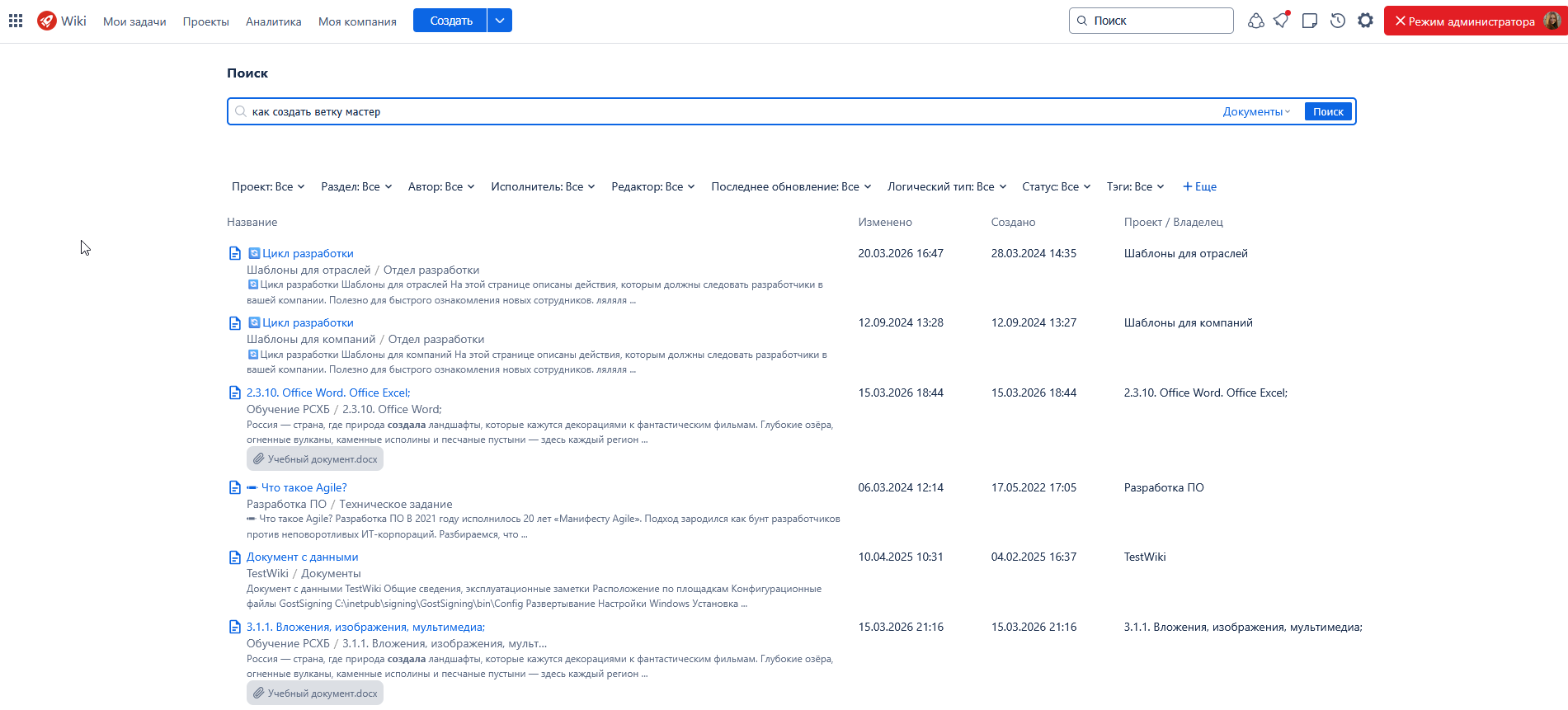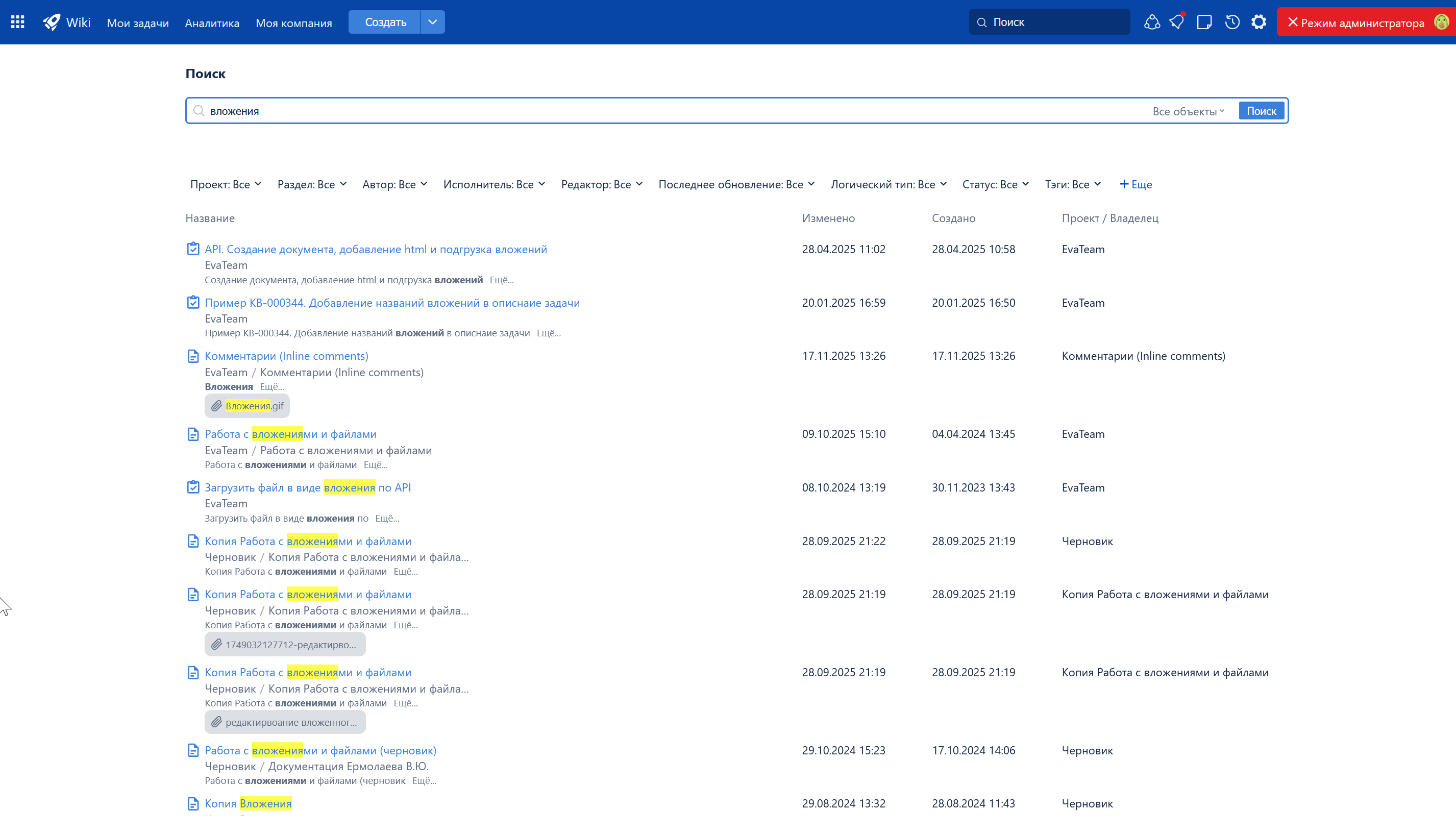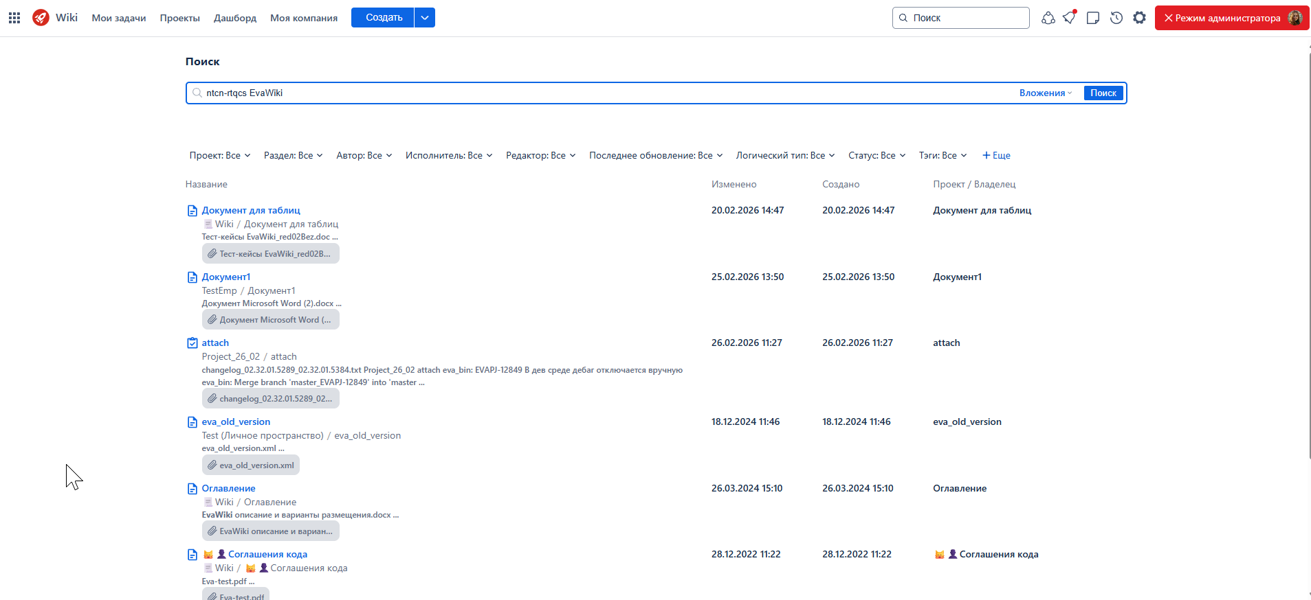 Обновлен механизм поиска по содержимому вложенных файлов. Система лучше индексирует содержимое файлов и корректнее извлекает текст документов, что позволяет выдавать более релевантный ответ на запрос пользователя.