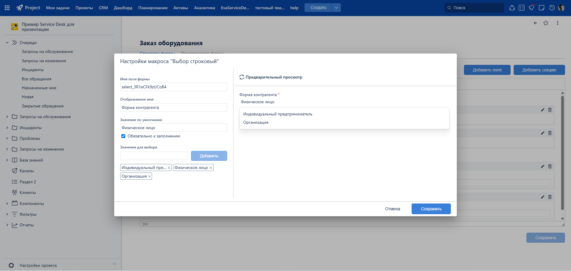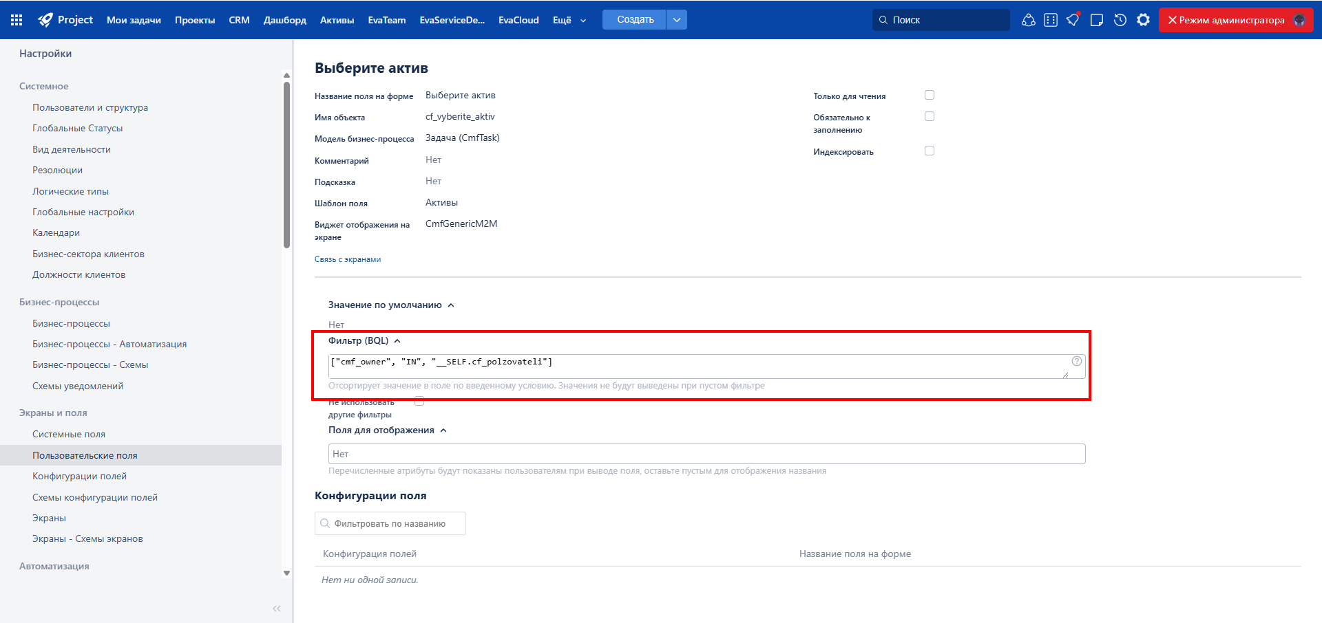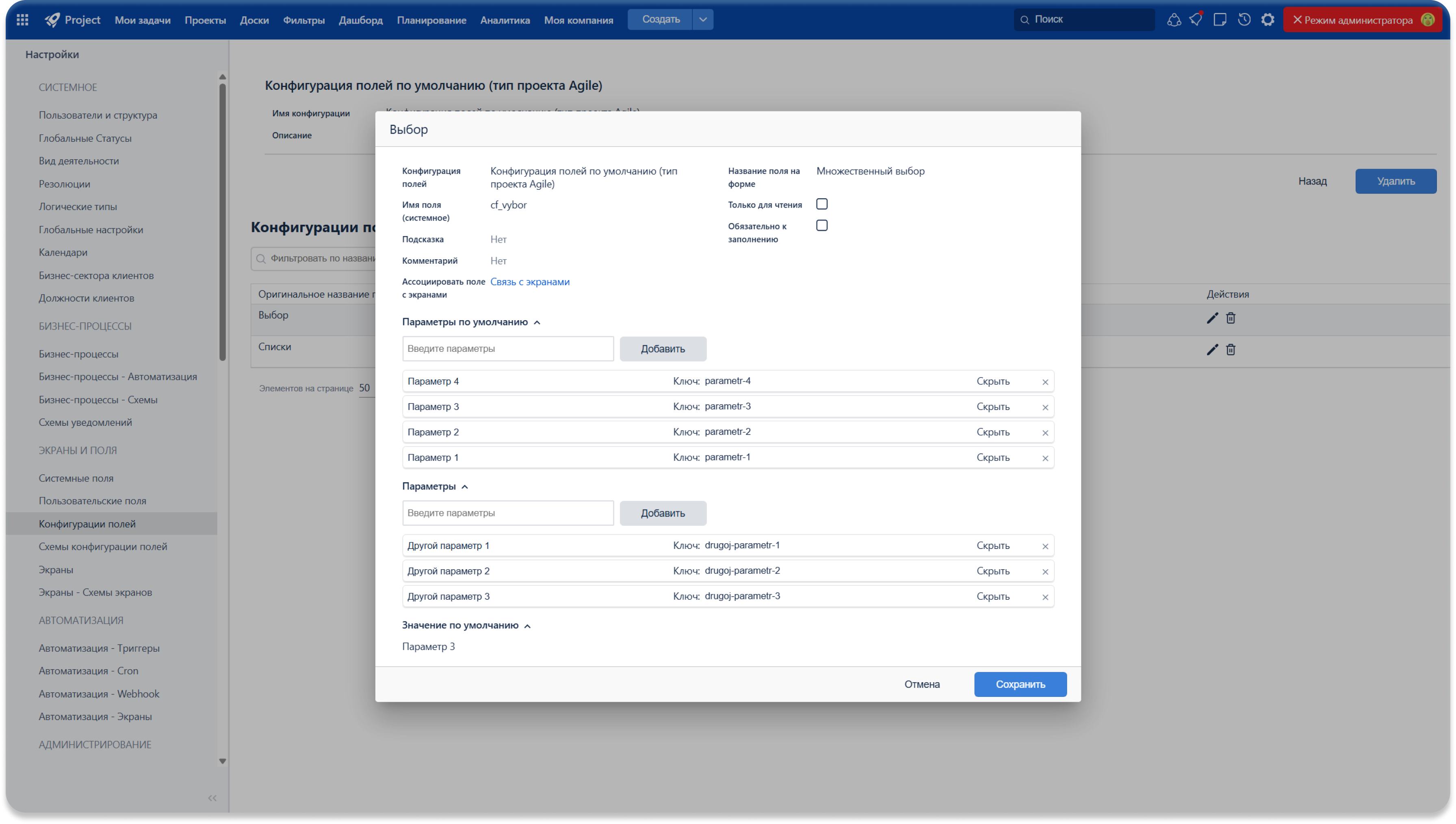 Поля с типом «Множественный выбор» теперь настраиваются так же гибко, как и другие: можно управлять значениями по умолчанию и поведением поля в разных контекстах, а логика конфигурации стала единой. Это упрощает администрирование, повышает единообразие настроек и позволяет точнее адаптировать поля под бизнес-процессы команды.