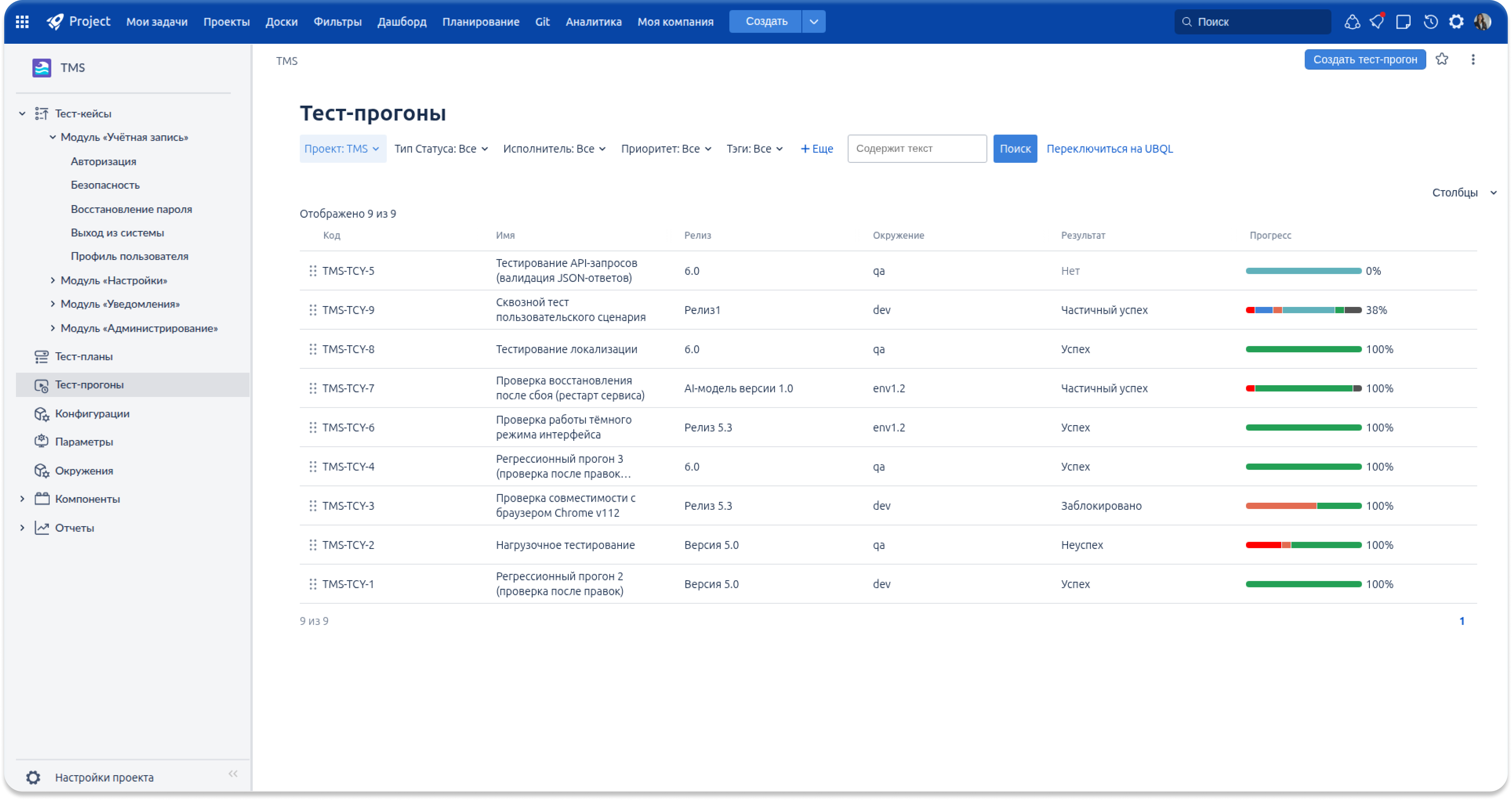 Структурированные тест-планы и тест-прогоны