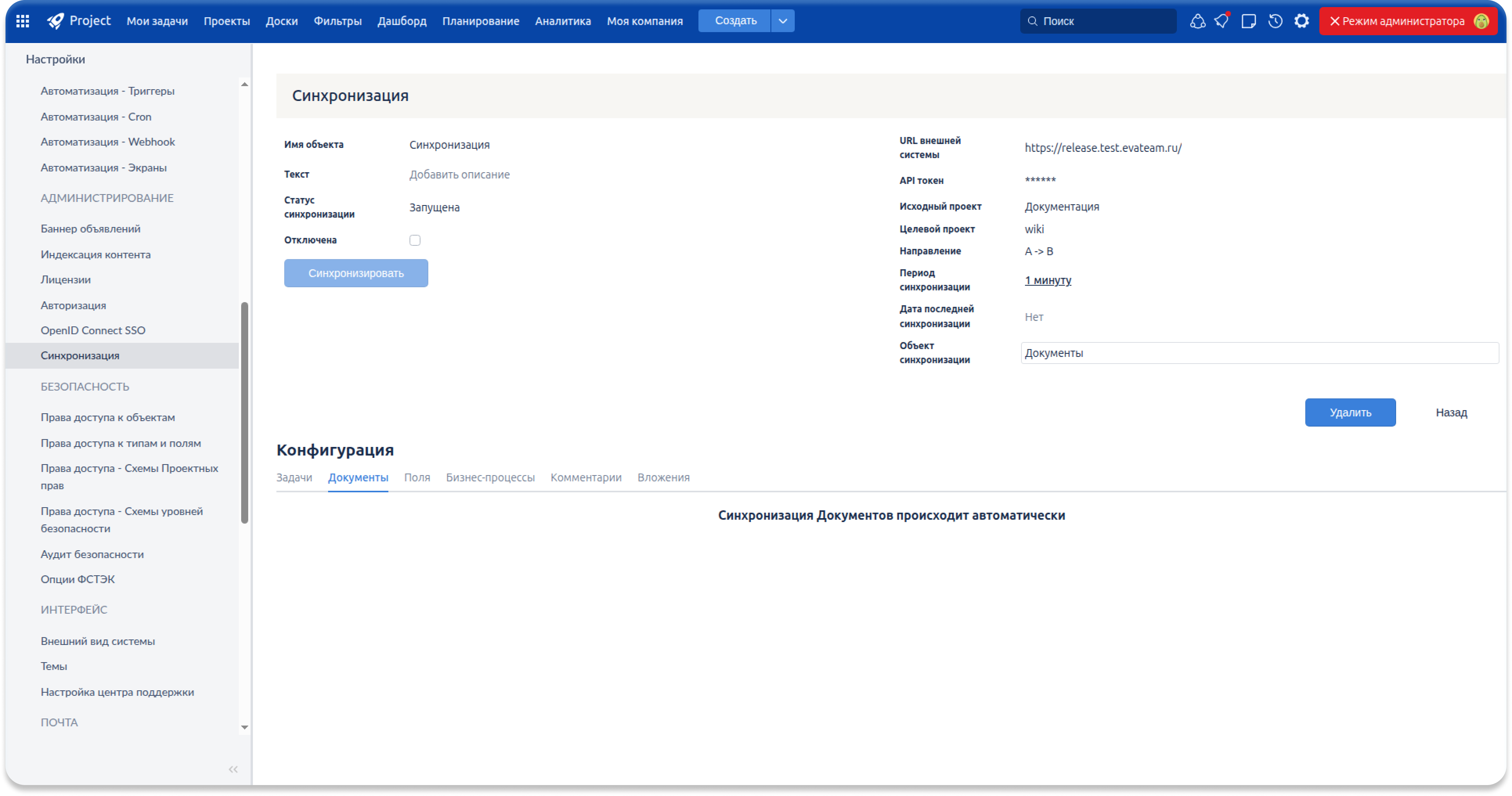 Теперь вы можете выстраивать единое рабочее пространство между кластерами с помощью настраиваемой межкластерной синхронизации. Администратор выбирает, какие сущности участвуют в обмене — только задачи, только документы или оба типа. Документы синхронизируются с контентом, комментариями, вложениями с версиями, правами доступа и историей изменений, формируя единый и актуальный контур работы без ручных операций и потерь данных.