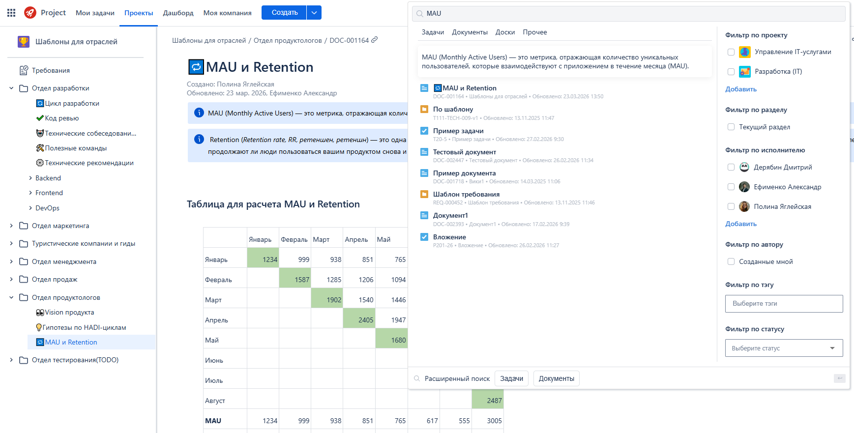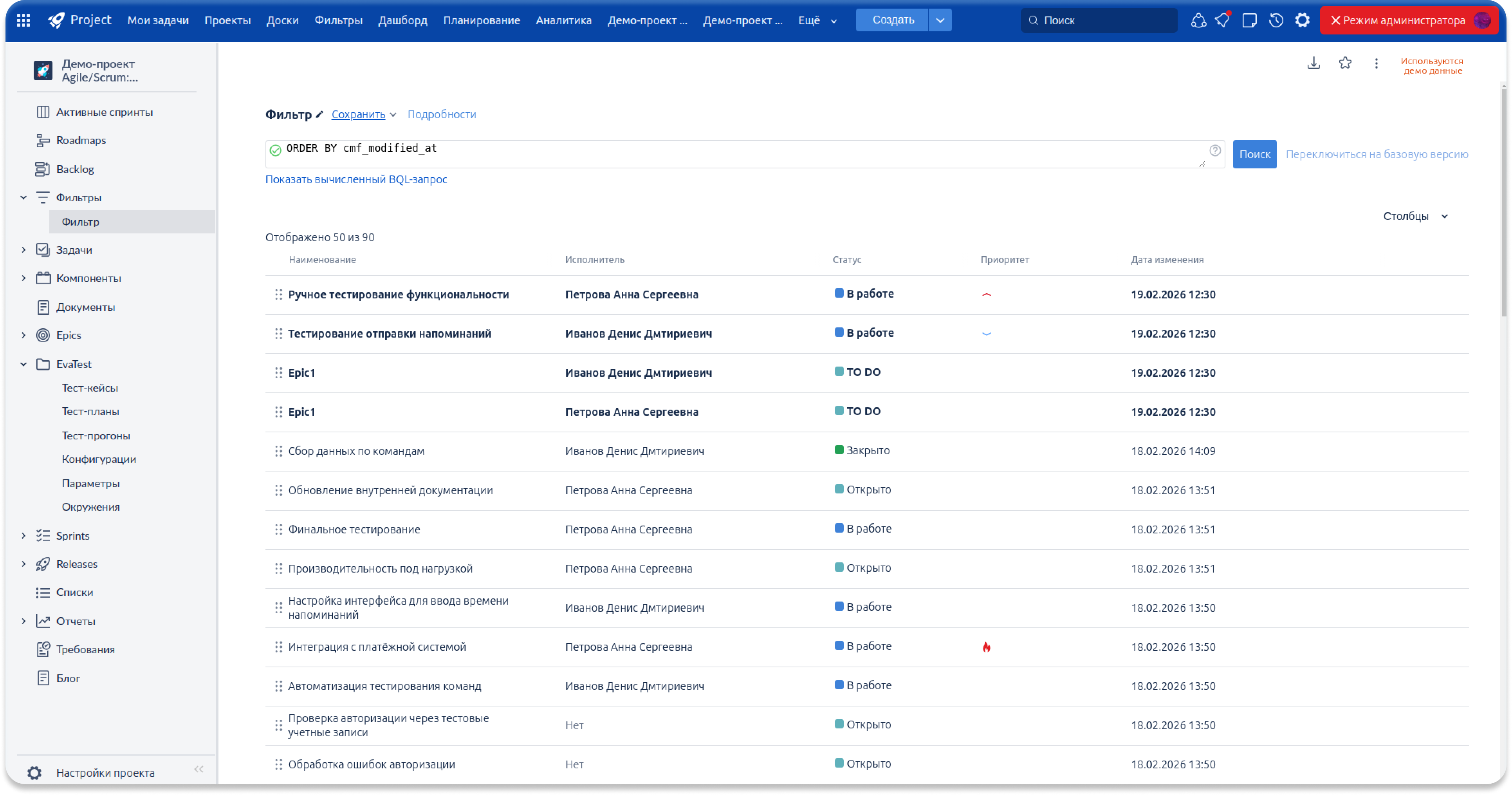 В разделах Проекты, Фильтры, Доски и Роадмапы реализован новый универсальный формат отображения списков. Таблицы стали быстрее, удобнее и визуально единообразнее. Обновлена панель поиска и фильтров — теперь она работает по тем же принципам, что и в Проектах и Дашбордах, обеспечивая единый пользовательский опыт по всей системе.