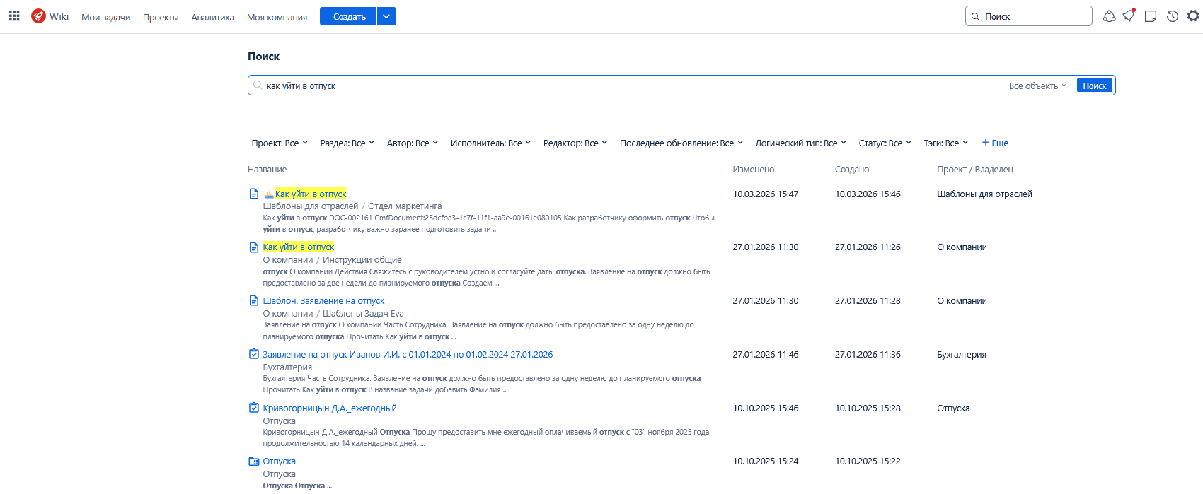 В EvaWiki можно настраивать быстрые ответы для популярных запросов. При вводе типового вопроса система может сразу предложить соответствующий документ или инструкцию, сокращая время поиска информации.