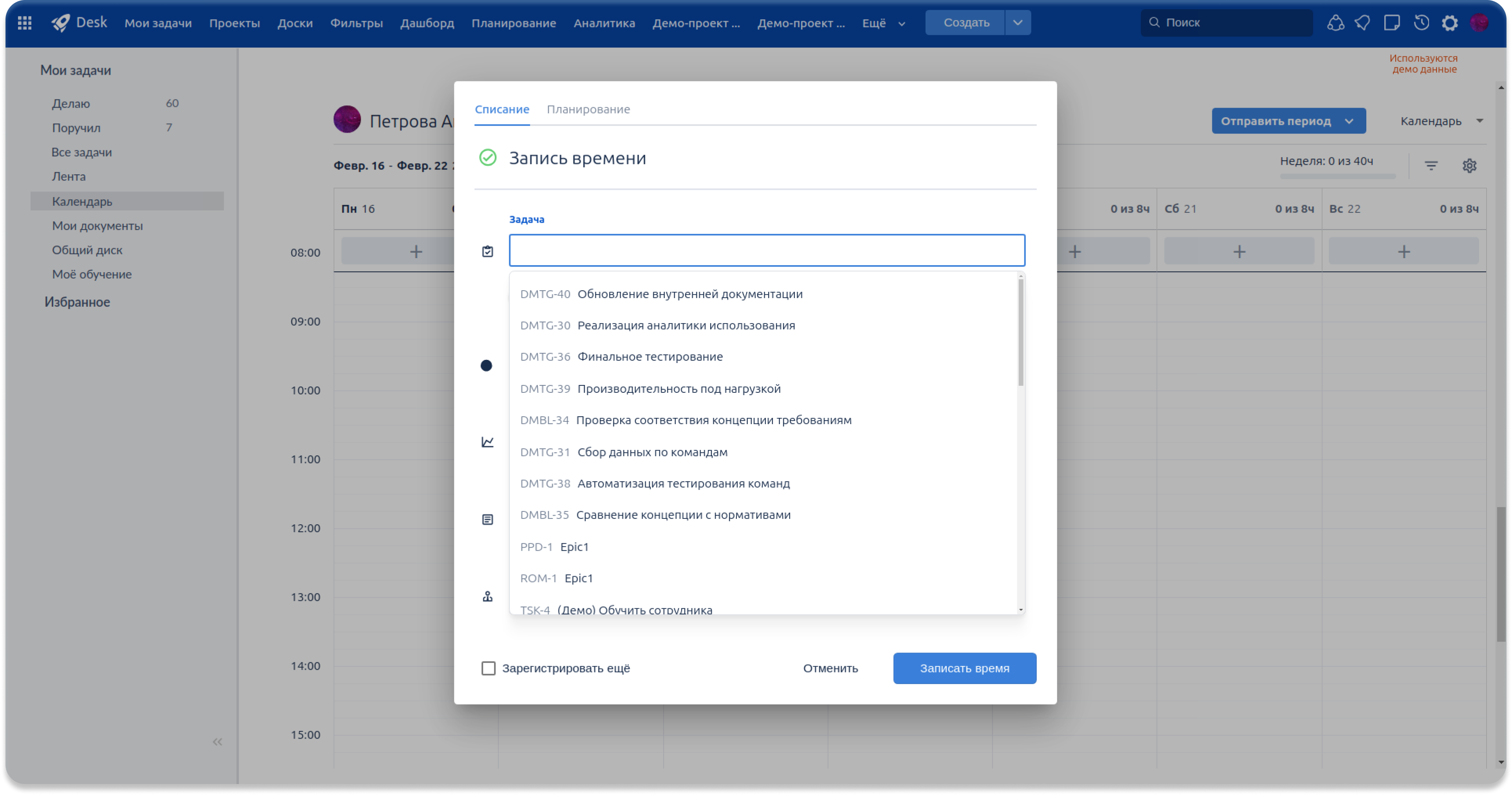 В интерфейсе улучшено отображение задач — теперь в модальных окнах дополнительно показывается код задачи. Это позволяет быстро отличать элементы друг от друга, особенно если задачи имеют одинаковые названия, и снижает риск ошибок при выборе.